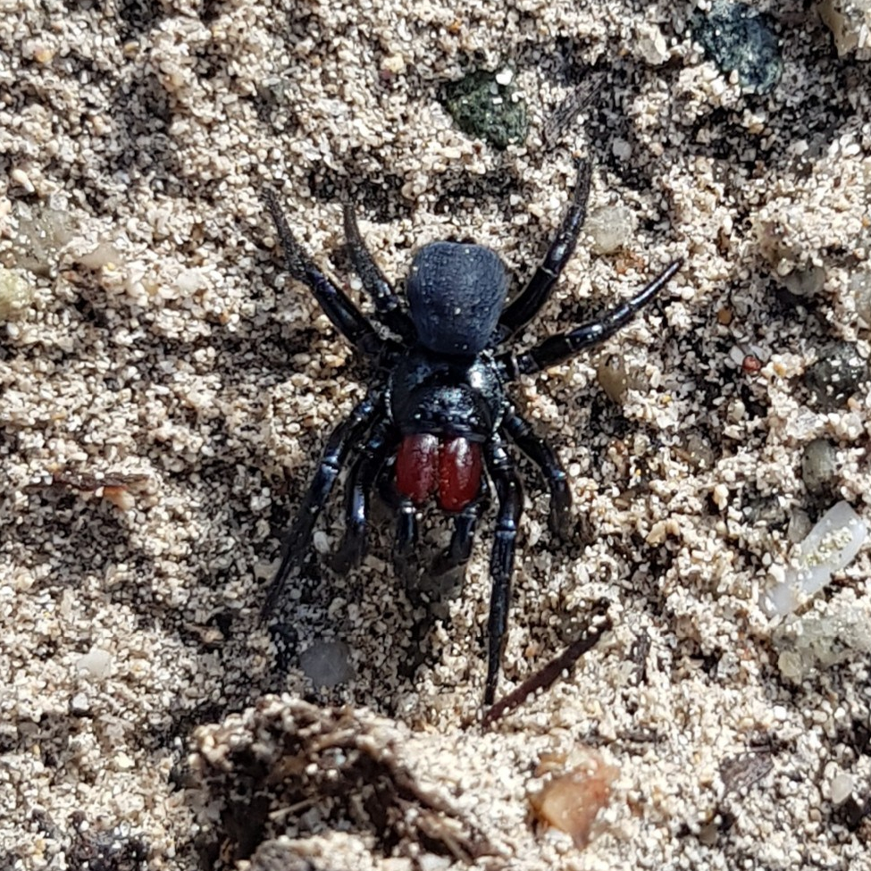 We then headed to catch the bus back and on the side of the road found this weird spider which has since been identified as one of the mouse spiders (Missulena granulosa).