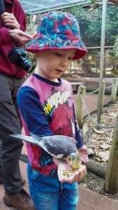 Liam feeding cockatiel @ Bunbury wildlife park