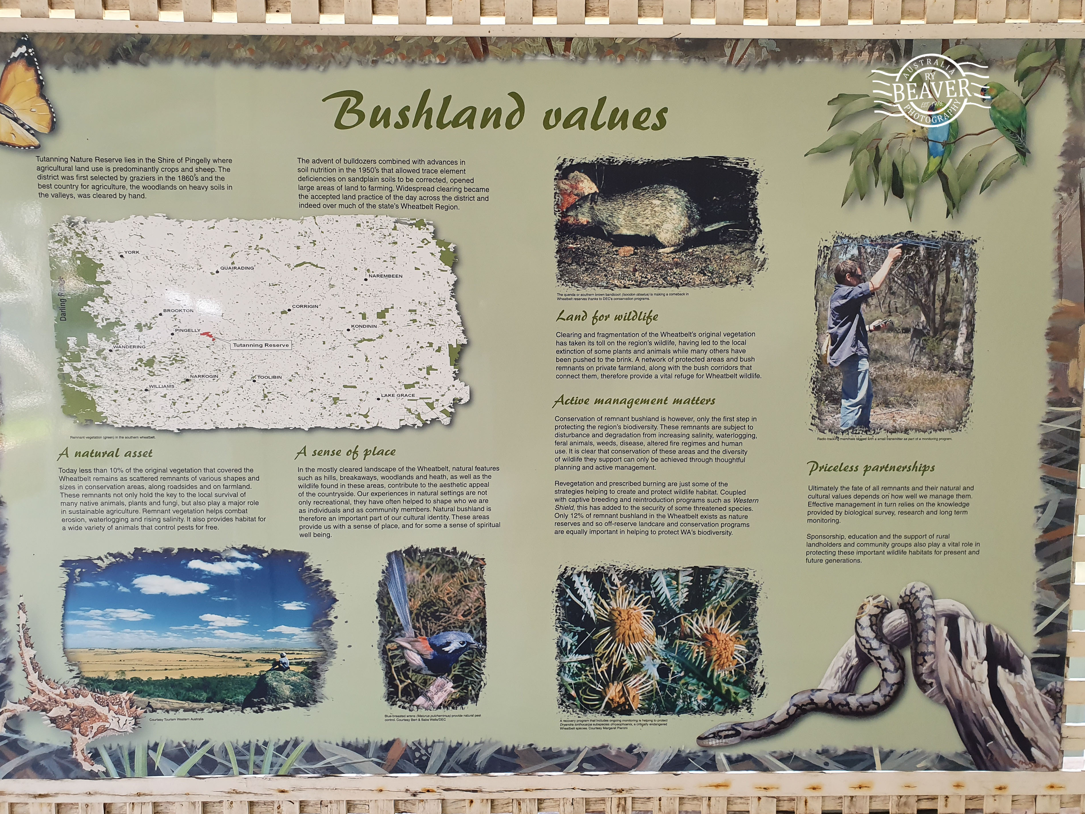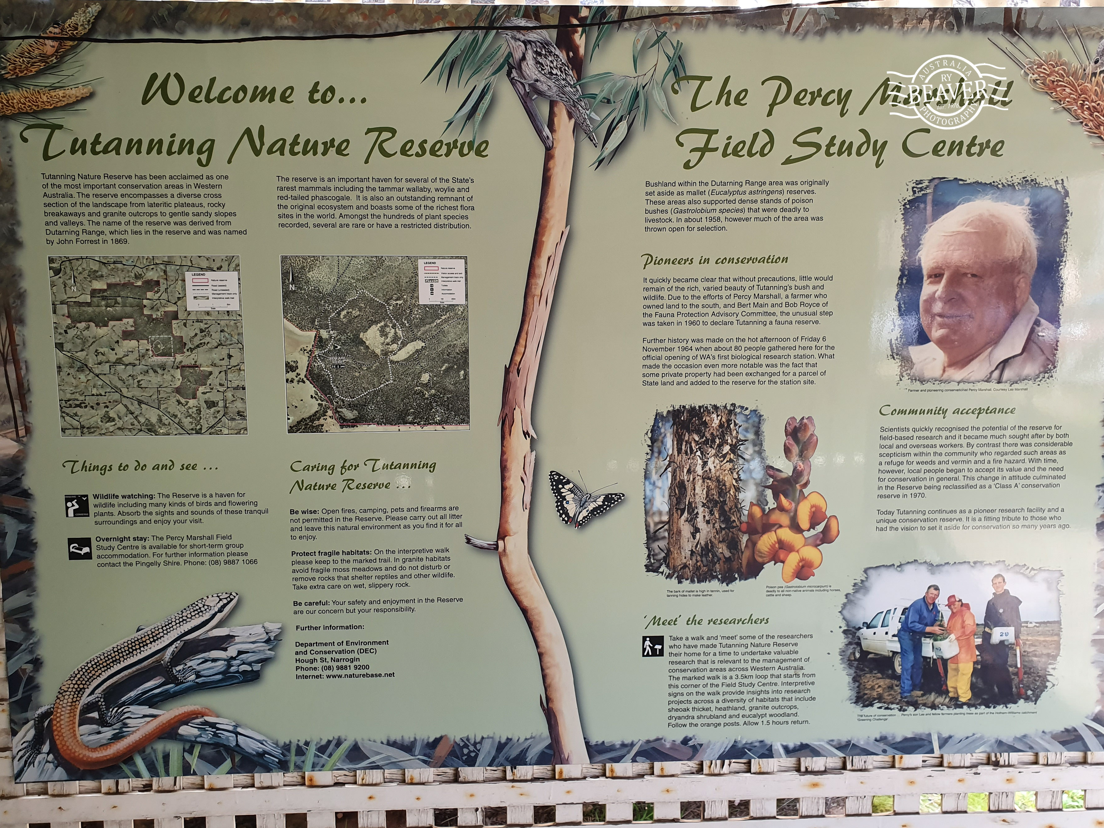 For additional information on the reserve follow these links from the Shire of PingellyTutanning NR & Percy Marshall Field Station (includes track map). It can be booked for a small fee by contacting the Narrogin office of DBCA.